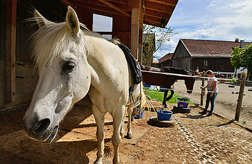 Auf unseren lieben, bestens ausgebildeten Ponys und Pferden können Sie als Anfänger und als Fortgeschrittener herrliche Ausritte in die Oberstdorfer Berge und Täler genießen! Auf unserem Reitplatz direkt am Haus haben Sie bei jedem Wetter Gelegenheit zum Reiten.